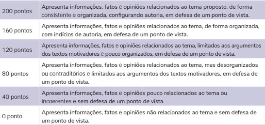 - O que é avaliado: A capacidade de construir uma argumentação sólida e consistente, utilizando exemplos, dados e argumentos para defender sua opinião.