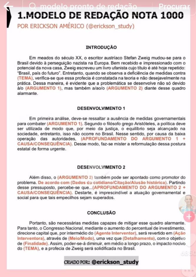 - Inspiração e Estrutura: Modelos prontos podem servir como uma excelente fonte de inspiração, ajudando você a entender como estruturar sua redação e desenvolver argumentos de forma coerente;